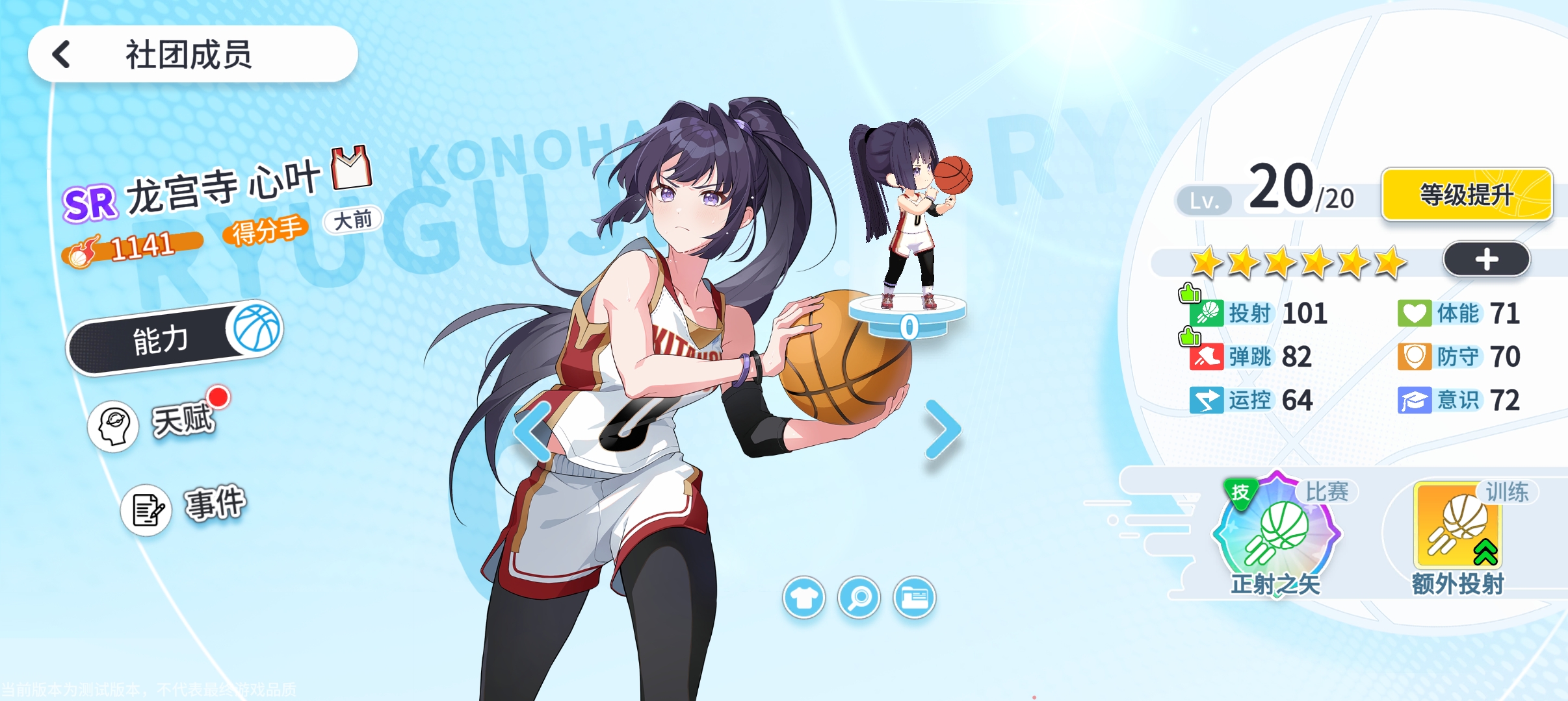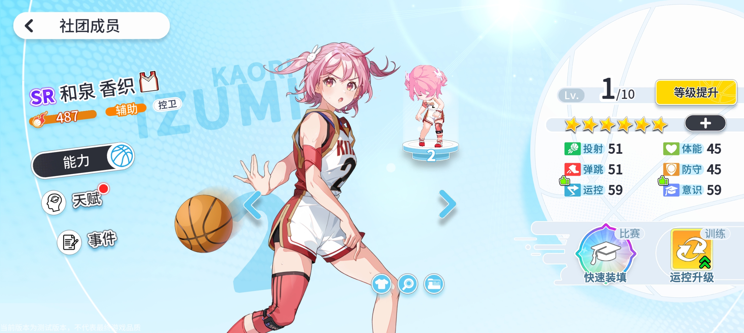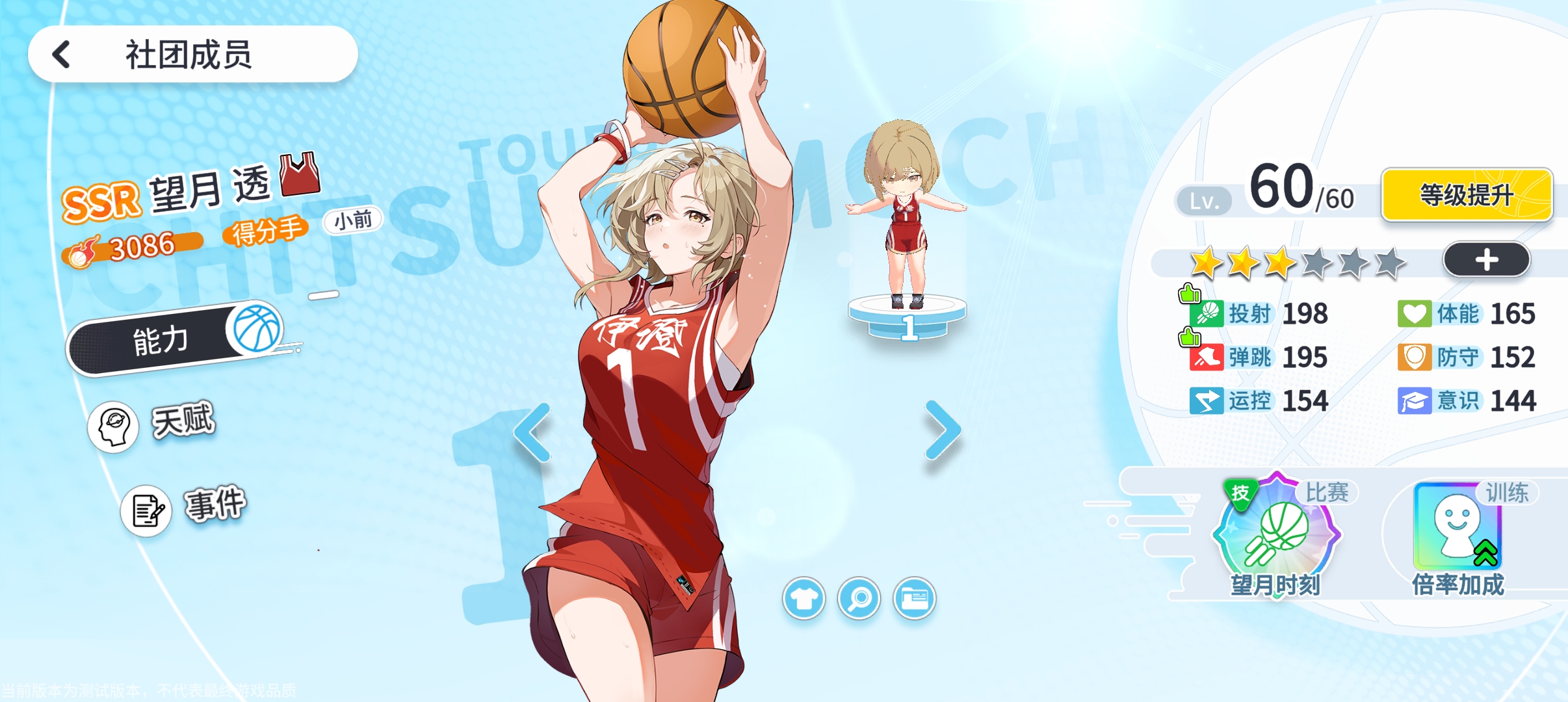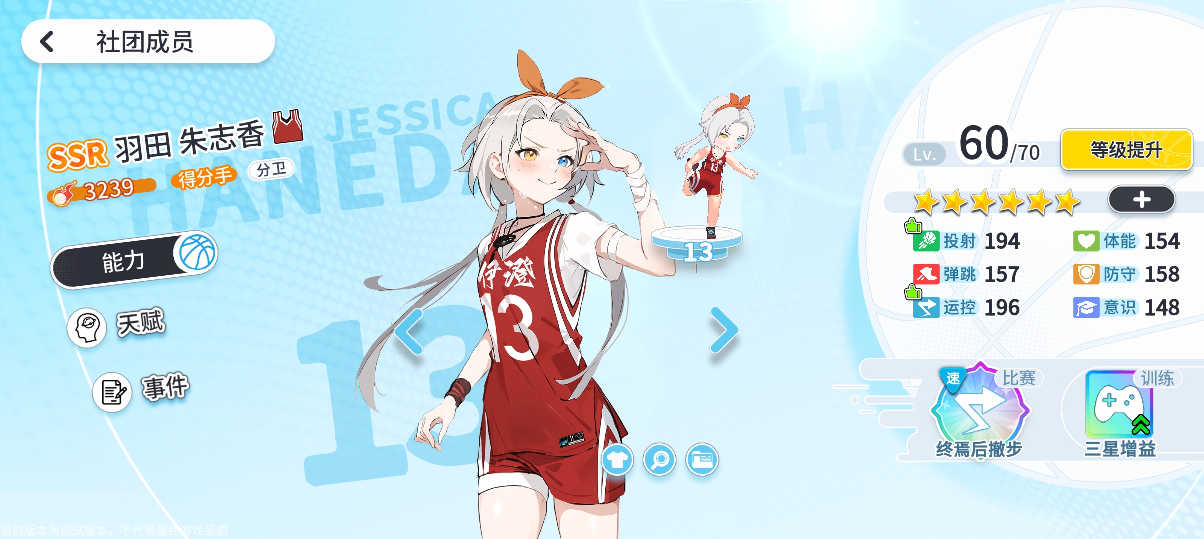 大前上有三个选择:第一张就是榎本,这套阵容选择保底是三火箭加盖帽属性,但是大前上没有一张好的火箭卡而且盖帽属性可以说只对中锋有效所以不用开五火箭,选择榎本提升全队5%看穿,第二个龙宫,大招命中三分喜欢魔球的可以带龙宫+克拉丽丝,魔球打法,第三个春澄,作为主攻手对体能的要求是非常严格了,且防守是会掉体力的猜拳输了后,分位这个位置是体力要求最大的,春澄的大招可以大量回复哈登的体力