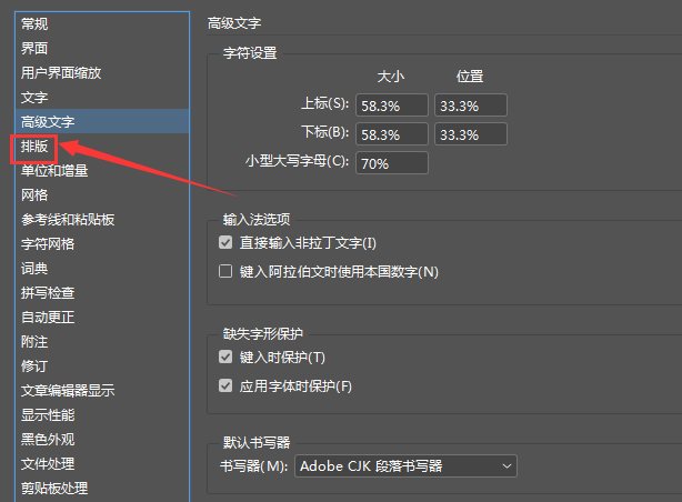 4、然后在打开的窗口界面中,点击左侧栏中的"排版"选项。