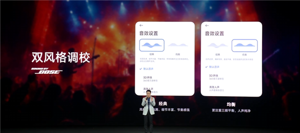 BOSE调音提供经典与均衡双风格,同时支持分级调音与多场景定制化算法,覆盖音乐、视频、游戏等全场景音质需求。
