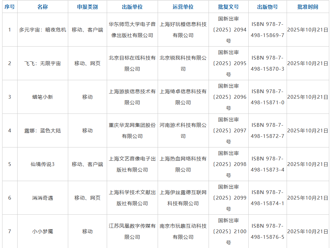 新一批进口网络游戏版号发放,本次共有7款游戏通过审批,《小小梦魇移动端》《多元宇宙:暗夜危机》等游戏过审。