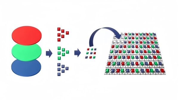 LCOS实现全彩的方式,是用三颗RGB颜色的LED灯或激光作为照明。