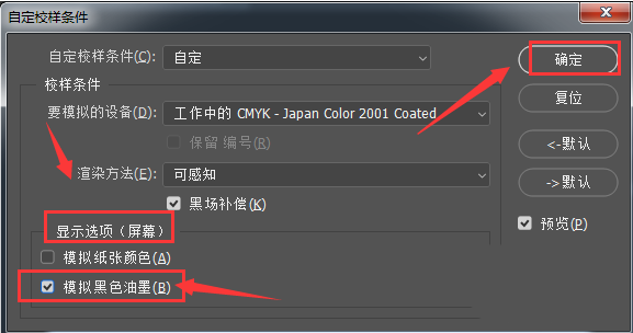 3、然后在打开的窗口界面中,找到"模拟黑色油墨"选项,将其小方框勾选上,最后点击右上角的"确定"就可以了。