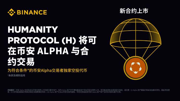 币安Alpha将于2025年06月25日17:00(东八区时间)上线和开放Humanity Protocol (H) 的交易。此外,币安合约平台将于2025年06月25日17:30(东八区时间)上线HUSDT永续合约,最高杠杆可达50倍。