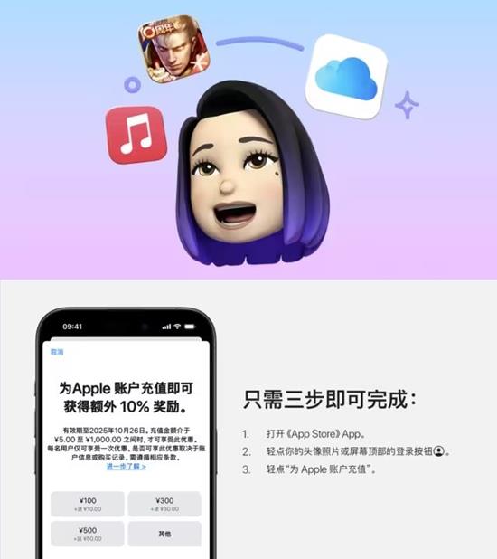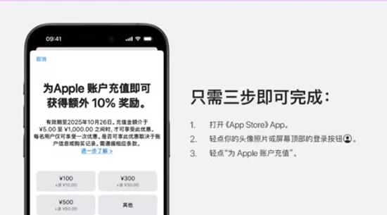 充值路径:打开App Store,点击右上角头像,进入Apple账户充值页面。
