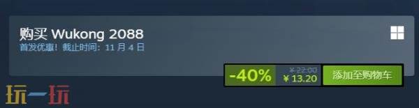 由 Uto88开发和 Uto88发行的闯关幸存者游戏《Wukong 2088》现已在Steam正式发售,国区售价22.00元,首发享-40%折扣优惠,仅需13.20元,时间截止11月4日。