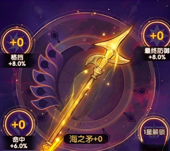 海之矛设有四个槽位,分别对应格挡、命中、最终防御与最终攻击四项属性。随着宝石等级和升级材料的投入,各项属性可实现8%至40%不等的提升幅度。当最终攻击与最终防御达到上限时,还会激活额外的格挡属性,并使击破效果提升20%。该圣物不依赖特定阵容,兼容性强,非常适合新人玩家进行自由搭配,是前期过渡和中期发育阶段的理想选择。