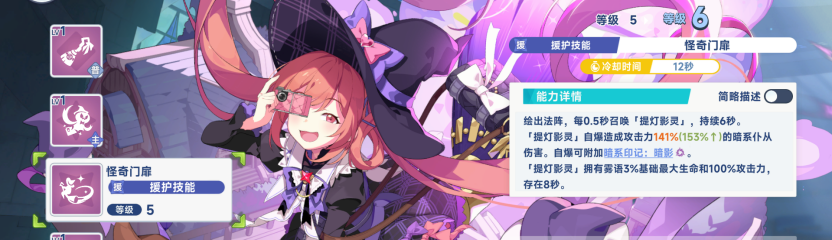 雾语的援护技有着非常高的初始倍率,并且12秒的cd也不算长,生成的小鬼会自动跟踪附近的敌人,如果全都命中同一目标,输出会非常爆炸,但是有一点要注意,小鬼是有血量的,如果在离敌人很远的敌方释放援护技能,可能召唤出来的小鬼会被不明aoe直接带走,丢失很多输出!