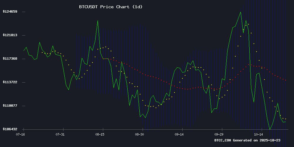 根据目前的技术分析,比特币交易价格为 108,371.94 USDT,低于其 20 日移动平均线 113,969.56,表明可能存在暂时的看跌压力。然而,MACD 显示看涨势头,其值为 7,841.01,而信号位为 4,141.08,表明潜在价格强劲。布尔带指标显示价格接近 101,454.11 的下限水平,这可能构成关键支撑位。BTCC 金融分析师 Ava 表示:“MACD 的收敛性以及接近下限水平表明,BTC 可能很快企稳。”
