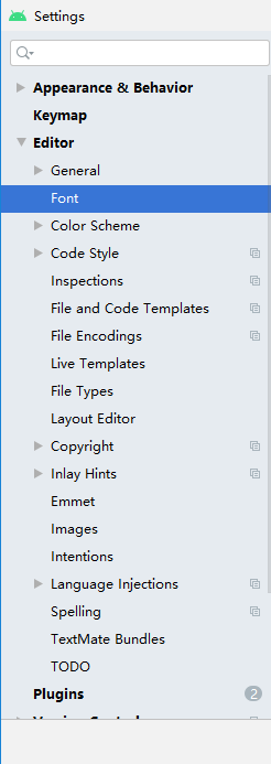 3、进入到新的窗口界面后,点击左侧栏"Editor"中的"Font"选项。