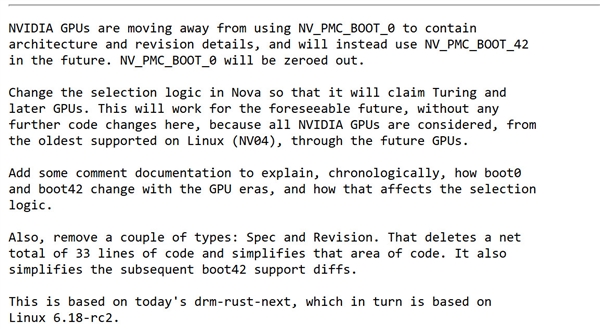 这是在基于Rust语言开发的Nova驱动中初步支持Rubin GPU架构的初步举措,而现在就公开此类信息,表明Rubin Linux系统支持比以往来的更早一些。