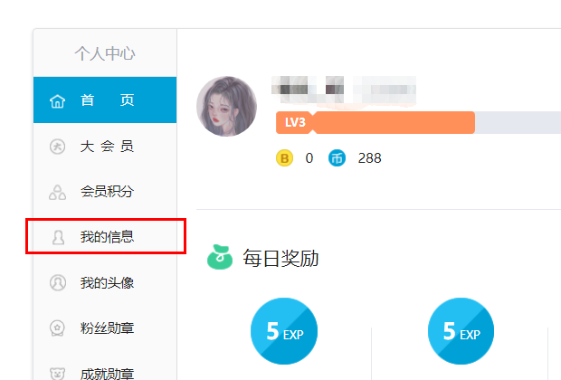 2、在打开的窗口界面中,点击左侧栏中的"我的信息"选项。