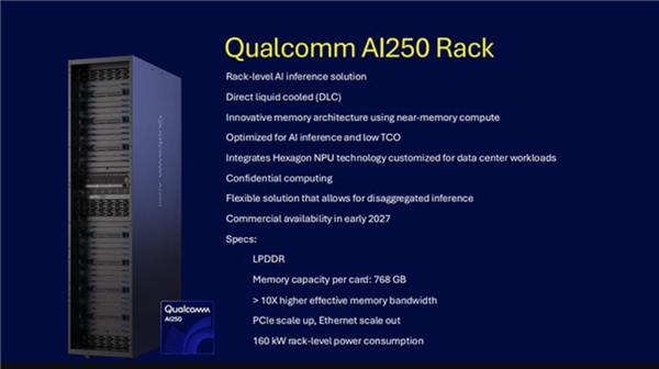 高通提供的也不是单一的AI芯片,而是AI机柜,主打一个TCO拥有成本更低的优势,并且对LLM大模型及LMM多模态大模型做了优化。
