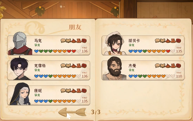 游戏中还包含两名特殊人物——公主与妮娜。若她们的好感度被刷至满值,将会激活“女子乐园”结局,导致无法与其他异性发展恋爱关系。因此,玩家需谨慎控制与这两位角色的互动频率,仅通过必要对话或事件维持基础好感即可。特别需要注意的是,切勿完成莫娜的所有相关事件,否则也将导向非婚结局。此外,若选择与公主发展感情,则严禁提升王子的好感度,否则会影响两人关系的稳定性。