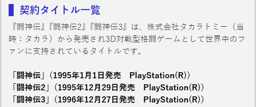 ·《斗神传》最早于1995年推出,登陆当时的PS1平台,是PS平台上罕见的3D格斗类型游戏,系列一共推出了三代作品,成为游戏历史上不可磨灭的记忆。