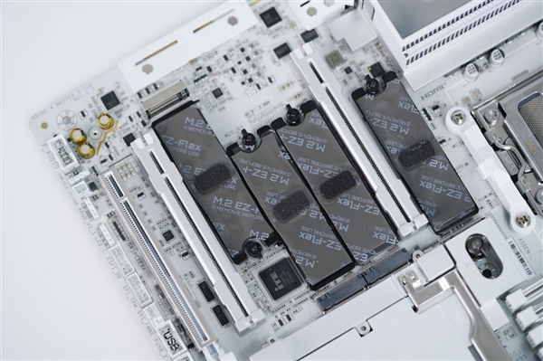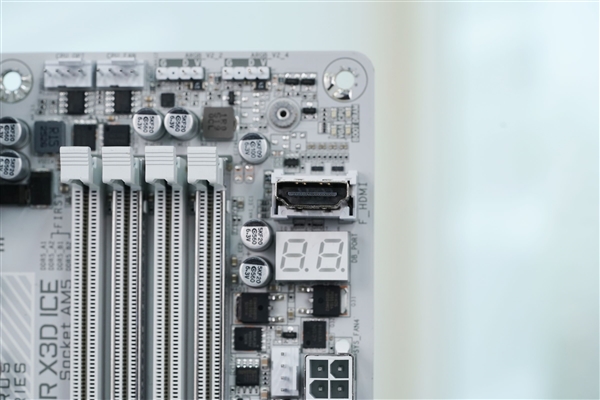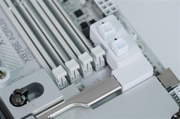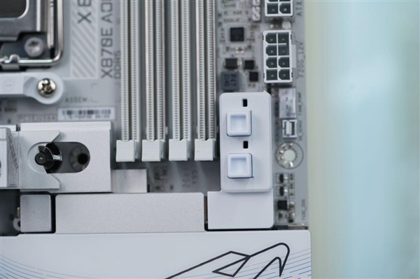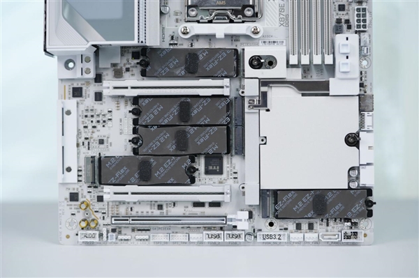 技嘉X870E AORUS MASTER X3D ICE超级冰雕采用了全新设计的纯白色外观,主板正面拥有大面积的全覆盖装甲。