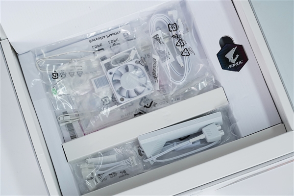 VRM散热装甲上配有一块大面积的AORUS灯光区域,点亮后可以实现无限镜灯效。