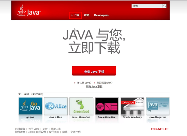 3、进入到Java官网中,点击上方中的"下载"选项。
