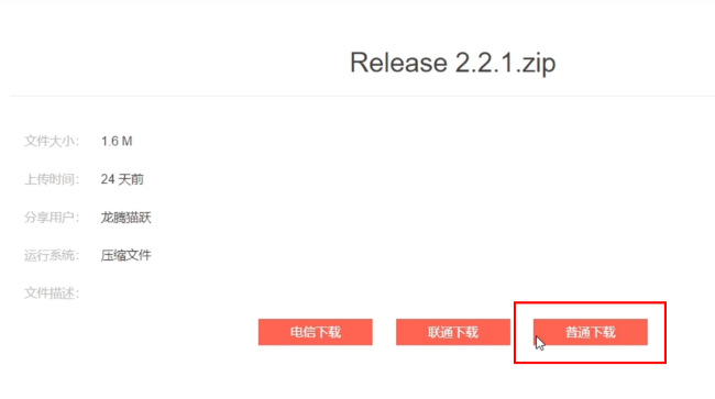 3、在给出的下载选项中,点击"普通下载",下载完成后无需解压直接打开。