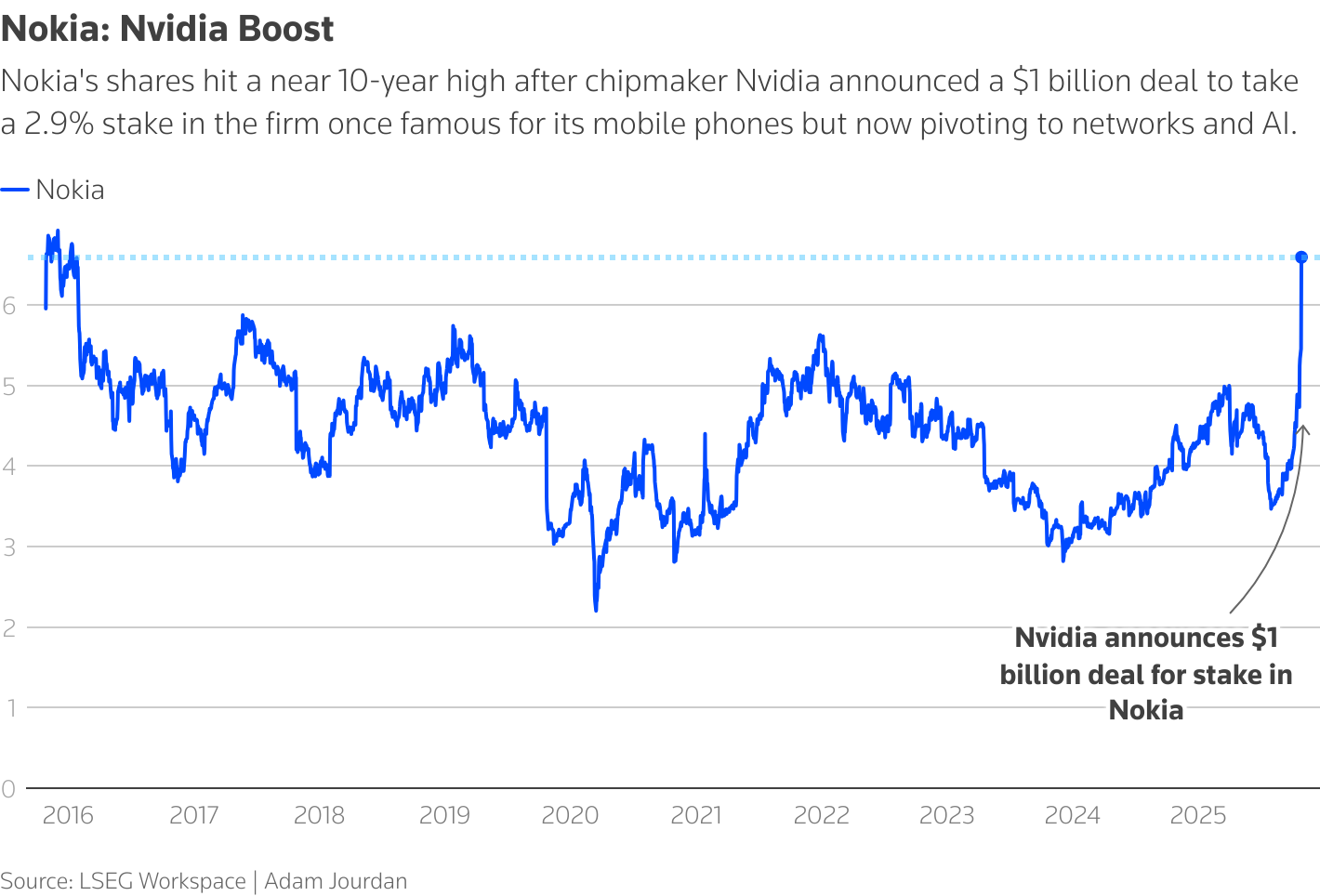 消息公布后,诺基亚股价飙升 22%,创下近十年来的新高。