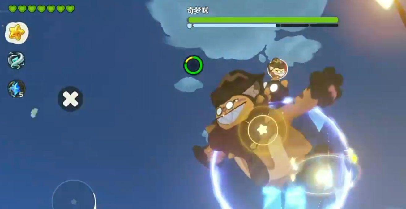 飞行期间,奇梦咪还会召唤出初始形态的小型分身协助作战。当它准备落地时,周身会被气泡包裹,并释放一次大范围伤害技能。此时护盾较为坚固,推荐使用“星星魔法”类技能进行集中输出,连续击破护盾后,BOSS便会从空中坠落,进入下一阶段。