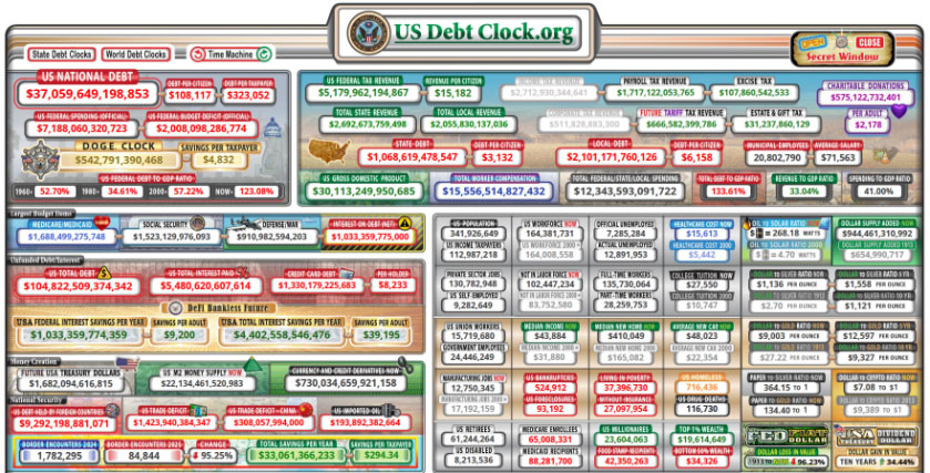美国国债数据(截图)。来源:US Debt Clock
