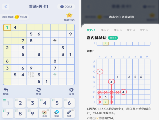 本作专注于数独解谜体验,提供多样化的难度选择,涵盖从入门级的四宫格、进阶的六宫格,到标准九宫格等多种模式。玩家需要在空白格中填入1至对应数量的数字,确保每行每列及每个区域中无重复数字出现。题目设计科学合理,关卡数量充足,既能满足新手学习需求,也能为资深玩家带来挑战。作为一款训练逻辑思维的工具,非常适合在碎片时间进行脑力激活。