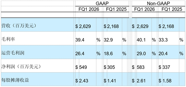 ●美国会计准则(GAAP)毛利率39.4%;非美会计准则(Non-GAAP)毛利率40.1%,均创历史新高