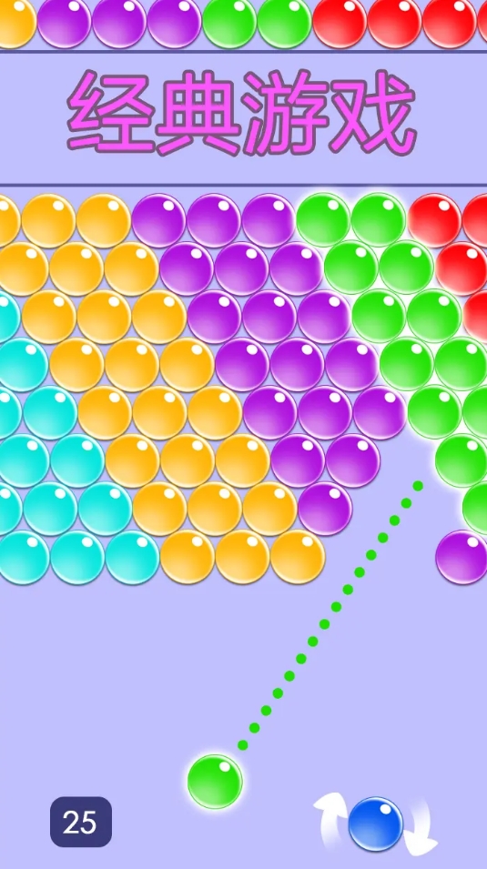 经典泡泡龙玩法在此作中得到了充分延展,提供大量连续挑战关卡,带来持久的消除乐趣。操作简单直观:调整发射角度,将同色小球连接在一起即可触发消除效果。若当前小球颜色不匹配,可通过切换功能更换。目标是在有限弹药耗尽前,清空屏幕上所有悬挂的小球群组,成功通关后进入更高难度的挑战阶段。