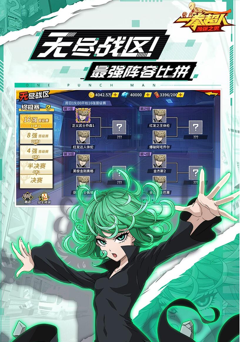 基于热门动漫《一拳超人》改编,采用回合制卡牌战斗机制。玩家可收集埼玉、杰诺斯等英雄角色,根据属性与职业构建战术阵容。战斗动画高度还原原作经典场景,如“普通的一拳”瞬间击败强敌。内置公会战与多人对战模式,增强互动性,适合偏好策略搭配与角色养成的用户。
