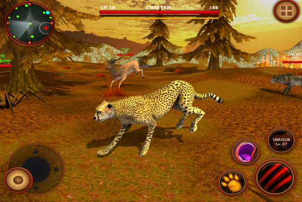 本作专注于还原猎豹在非洲草原上的狩猎全过程。从潜行追踪到高速追击,再到扑杀猎物,每一个环节都经过精心设计。光影效果采用光追技术,环境细节逼真,配合流畅的动作模组,展现出猫科动物的野性魅力。玩家可通过简单按键控制撕咬与闪避,面对野猪、羚羊等目标展开生存之战,同时警惕狮子与鬣狗群的威胁,体验弱肉强食的自然法则。