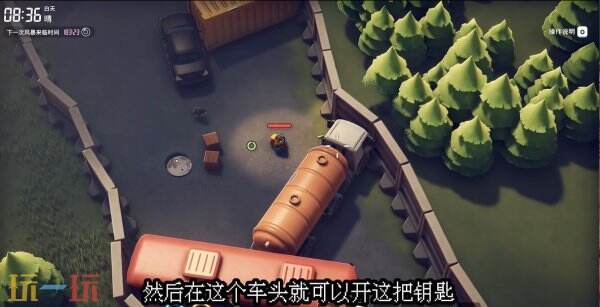 修复之后我们找到下图中的油罐车,可以在车头处使用钥匙来开门
