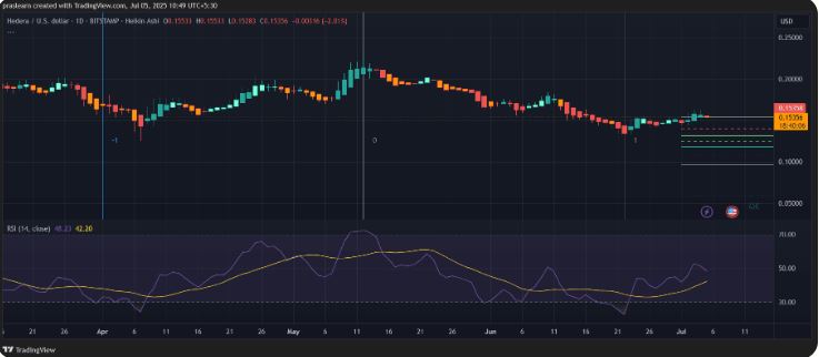 HBAR显示出初步的复苏信号——但尚未得到确认。RSI 必须明确上升到 50 以上,并且日线蜡烛必须以超过 0.16 美元的成交量收盘。