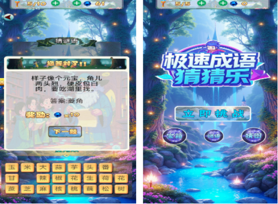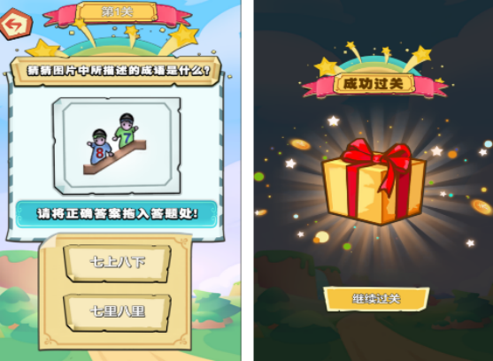 不仅与成语有关,这也是涵盖超多玩法的。需要每个玩家在开启挑战以后,根据每个题目的要求,填写正确的答案,其中就有与四字成语有关,以及以现实生活中常见的各种食物食材等为主的,每次完成任务以后也能获得相应的奖励。在获得了超多的钥匙以后,也能开启不同的宝盒,让你在闯关的时候也能更好的完成任务。
