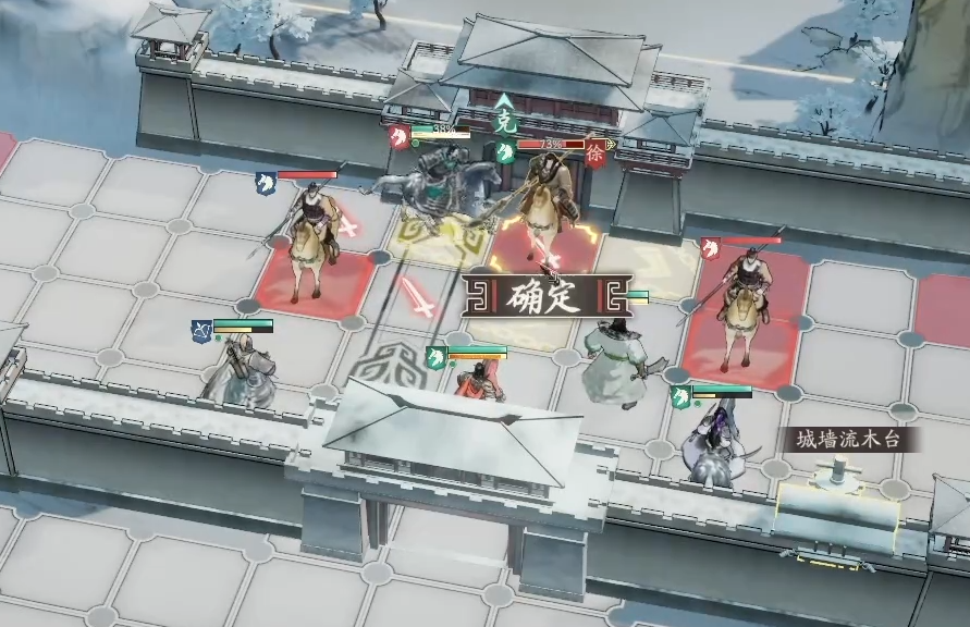 由于未进入后方敌军的行动范围,其余敌人将保持静止状态,从而实现分批歼灭的目标。后续战斗中,让夏侯惇顶在前排承担伤害,吕绮玲适当后撤,逐个清理剩余小兵,稳步推进即可。