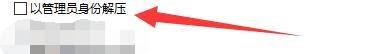 4、然后找到右侧中的"以管理员身份解压",将其小方框勾选上。