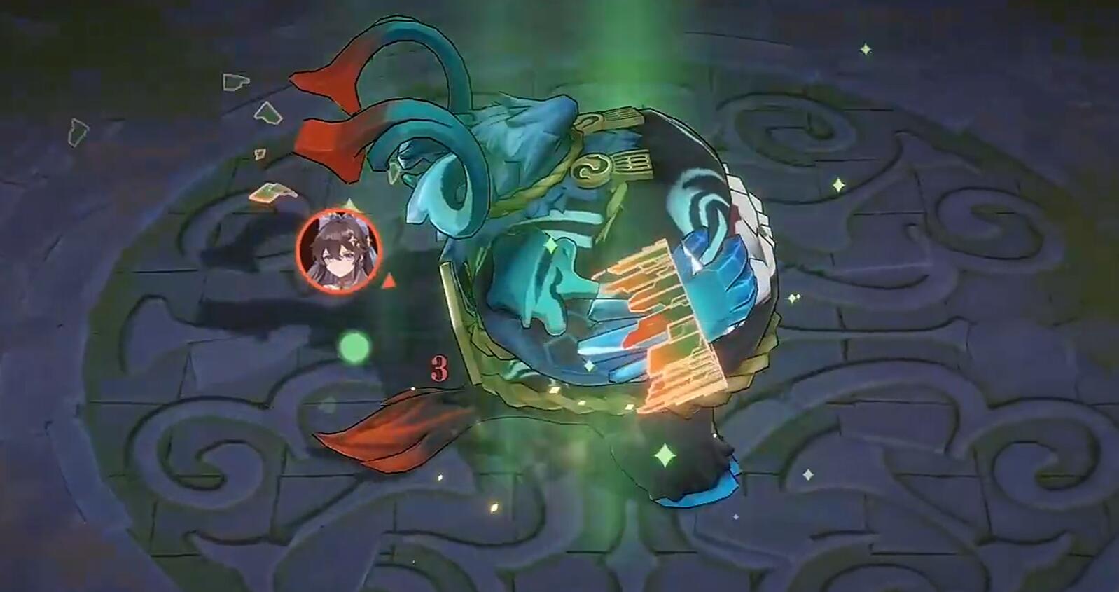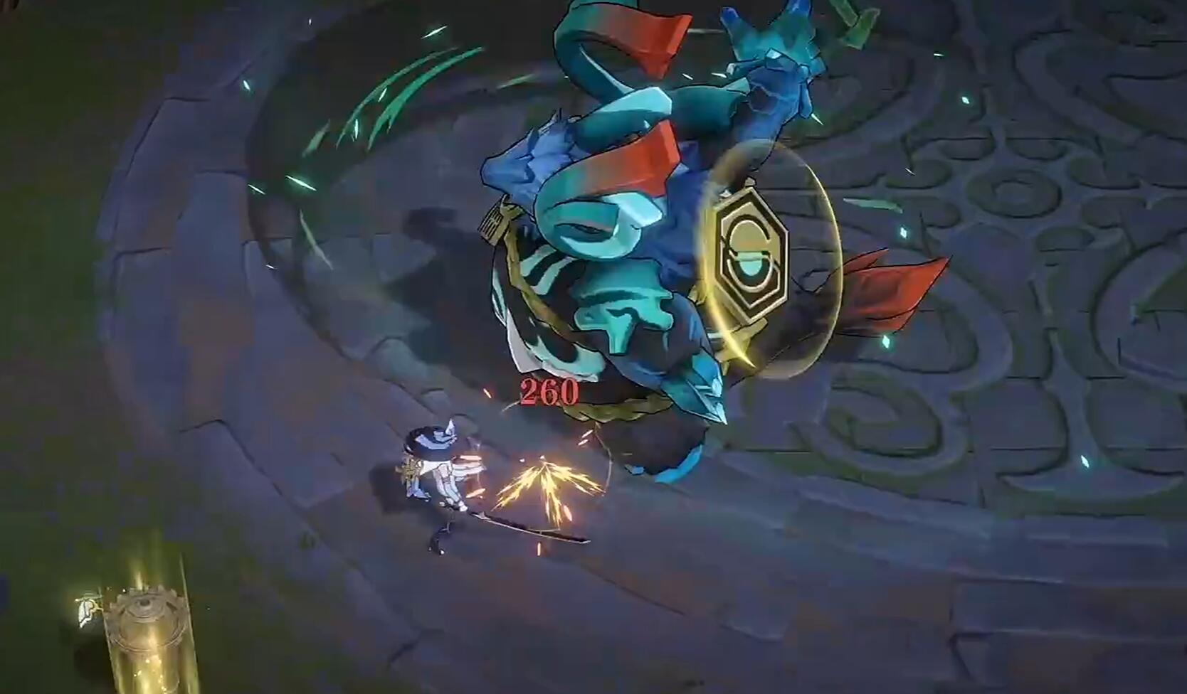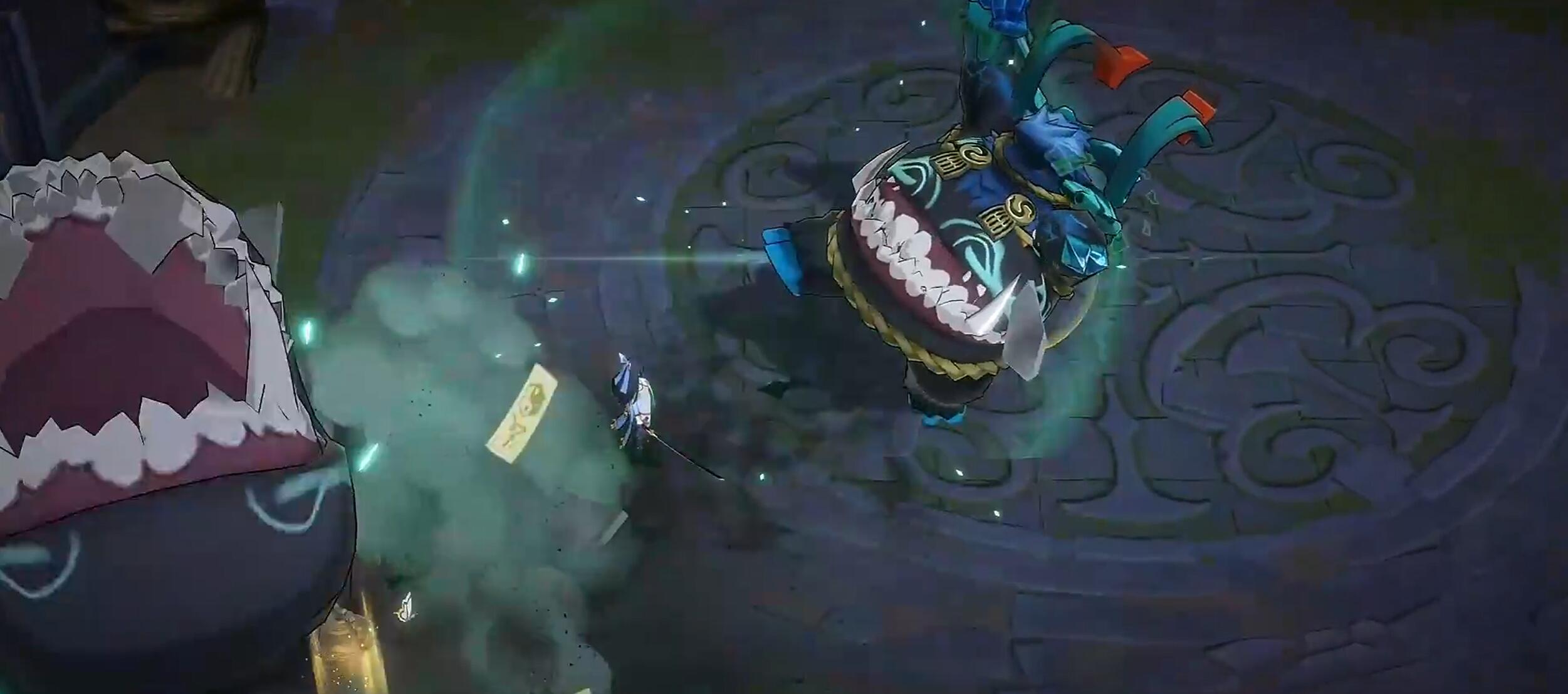 青渊凶厄是一个三属性boss,他有风属性,暗属性和雷属性,一共三种属性的技能。不过他本体却是风系,在游戏当中,玩家们可以使用土系,石系和电系技能来对其进行克制。青渊凶厄虽然体型非常巨大,可他一点也不笨拙,当有敌人出现在他身边的时候,他便会抱着自己厚厚的肚皮然后猛然冲过去,之后便会使用双手进行轮流攻击,这一段的攻击虽然看起来有间隔,Boss整体属于一个霸体阶段,小伙伴们最好不要在这个时候发起攻击。