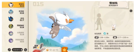 第1个是挖矿,雪绒鸟是一种比较特殊的宠物,会主动要矿石,玩家就可以来到矿区去寻找矿石,在寻找矿石的时候就会触发雪绒鸟的互动,不过需要注意的是,一旦在触发之后就需要额外送礼物。要是背包里面没有准备礼物,那这一次互动就没有任何的作用。礼物并不是很复杂,大部分都是一些常见的道具,平时在刷图的时候只需要留意一下,马上就可以收集到。要是觉得挖矿效率比较低,找不到想要的矿石,也可以寻找好友帮忙,通过组队的方式就可以更快的提升温馨值。