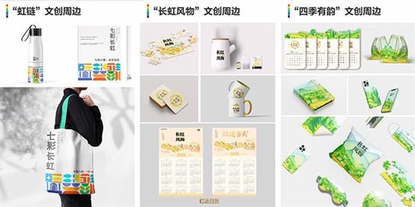 “我们经过实地调研,根据长虹乡的自然风光和文化特色,深度萃取‘梯田’‘星空’‘七彩’等元素,依托阿里云PAI-ArtLab平台以及通义大模型能力,搭建了团队自己的设计工作流,对长虹现有的标识标牌、品牌LOGO、文创产品等进行了全链路视觉升级。”获得特等奖(擂主)的湖北工业大学艺术设计学院团队介绍道。