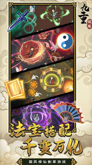 《九重试炼》里每个角色都有自己独有的战斗长处,游戏里给了特别多材料,大家能用这些材料按自己的方式提升角色战力。游戏里的武器和法宝种类也很多,打怪的时候这些武器法宝还能变得更强,攻击范围也会变大。游戏里还有打不完的历练副本,副本里能选的战斗灵兽也有上千种。