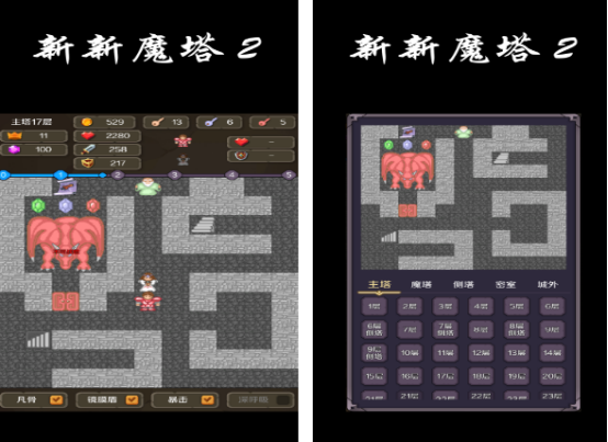 是新新魔塔所打造的续作,同样也是满足需求的,你可在这里面,感受复杂的地图环境就像是迷宫一样,也会遇到之前没有遇到的各种怪物,必须要在闯关的时候及时的应对怪物,使用手中厉害的武器以及超强的战斗实力,才能让你在每层魔塔当中都能击败所有的怪物。还有主塔、魔塔以及侧塔等不同的环境可以探索。