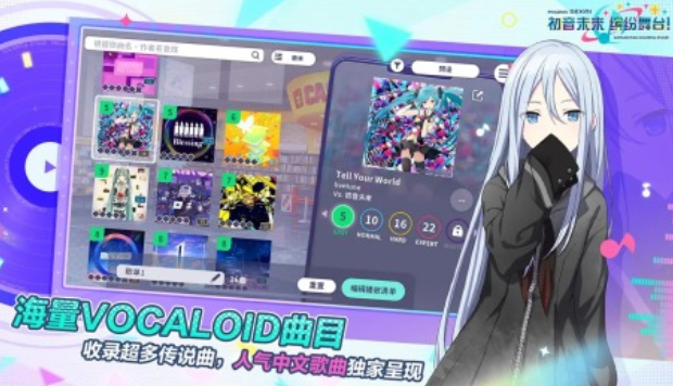 初音未来是一个热门的虚拟形象,通过初音未来缤纷舞台手游,玩家就可以操控这些初音形象,在舞台上演奏多首歌曲,要想让角色顺利演奏,玩家就要通过点按的方式,精准控制歌曲的节奏,另外游戏里还会有所以不同的少女,可以针对性的培养这些角色,让他们和初音未来能一起上台表演,舞台的灯光镜头,包括服饰需要玩家亲自搭配,能在挑战过程中,把玩家培养成一名优秀的明星经纪人。