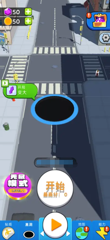 在游戏开局之前,玩家也可以通过为黑洞加持buff的方式,来增加开局的赢面,例如玩家可以增强面积药水,亦或是使用磁铁、能量补充剂等等材料。