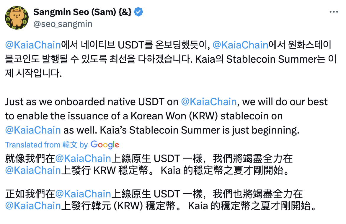 如果要发行KRW 韩元稳定币,以太坊一定是最好的选择,因为目前所有的主流稳定币都在以太坊上流通。其余像是Kaia、Avalanche 和Solana 等链上的部署应该由稳定币发行者自行决定。