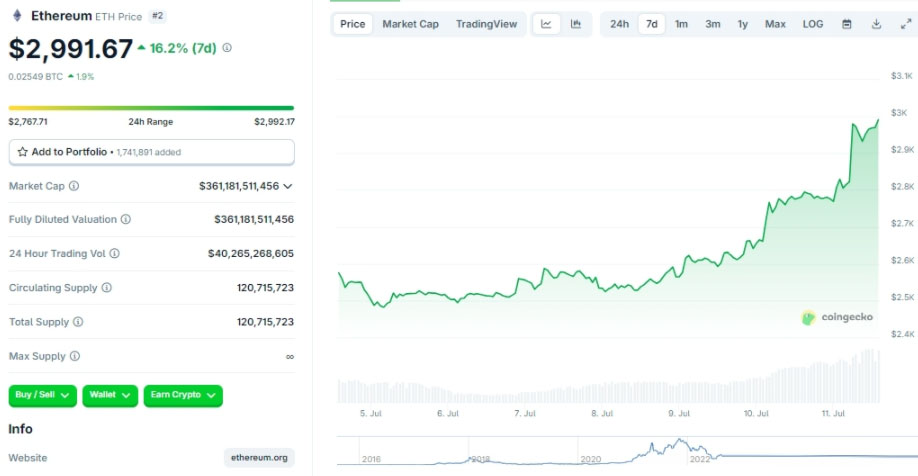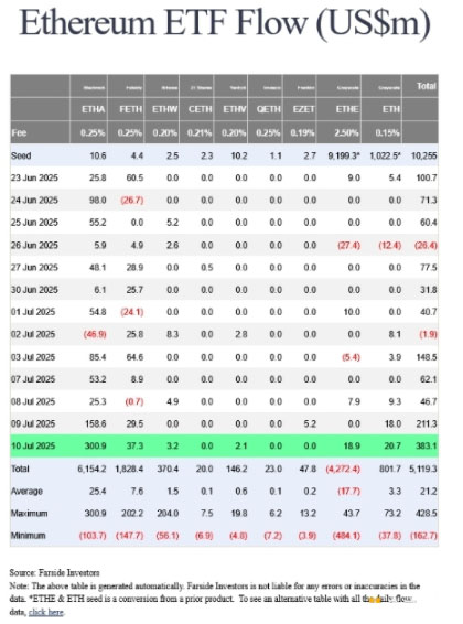 近日,以太坊ETF始终处于资金净流入状态,尤以最近两天金额最为巨大:7月10日,美国现货以太坊ETF净流入3.831亿美元,这也是该基金历史上第二高的净流入额;7月9日,净流入2.113亿美元;7月8日,净流入2950万美元;7月7日净流入6210万美元……