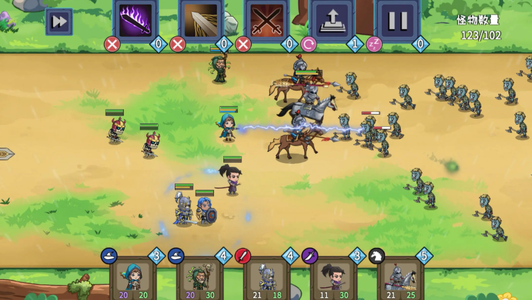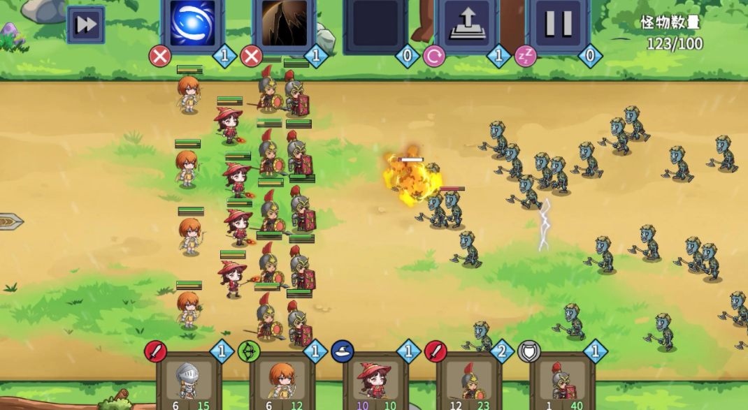 游戏里会有很多魔法的设定,借助这些魔法元素,可以更加轻松的对抗怪物,并且在游戏里,不需要玩家进行复杂的操作,可以在游戏开始之前先选择兵种,接着挑战过程中根据实际的需求施加法术,进入上场之后会自动释放技能攻击,想要快速结束战斗的玩家可以调节战斗速度,是一个可以让玩家在空闲时刻放松自己的游戏,每个成员都可以根据自身的游戏策略,选择不同的兵种组建队伍。