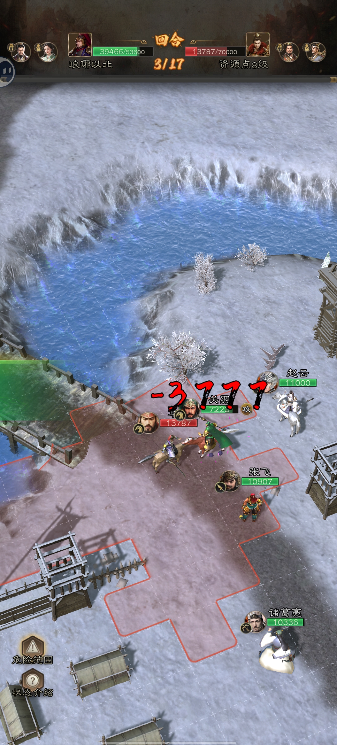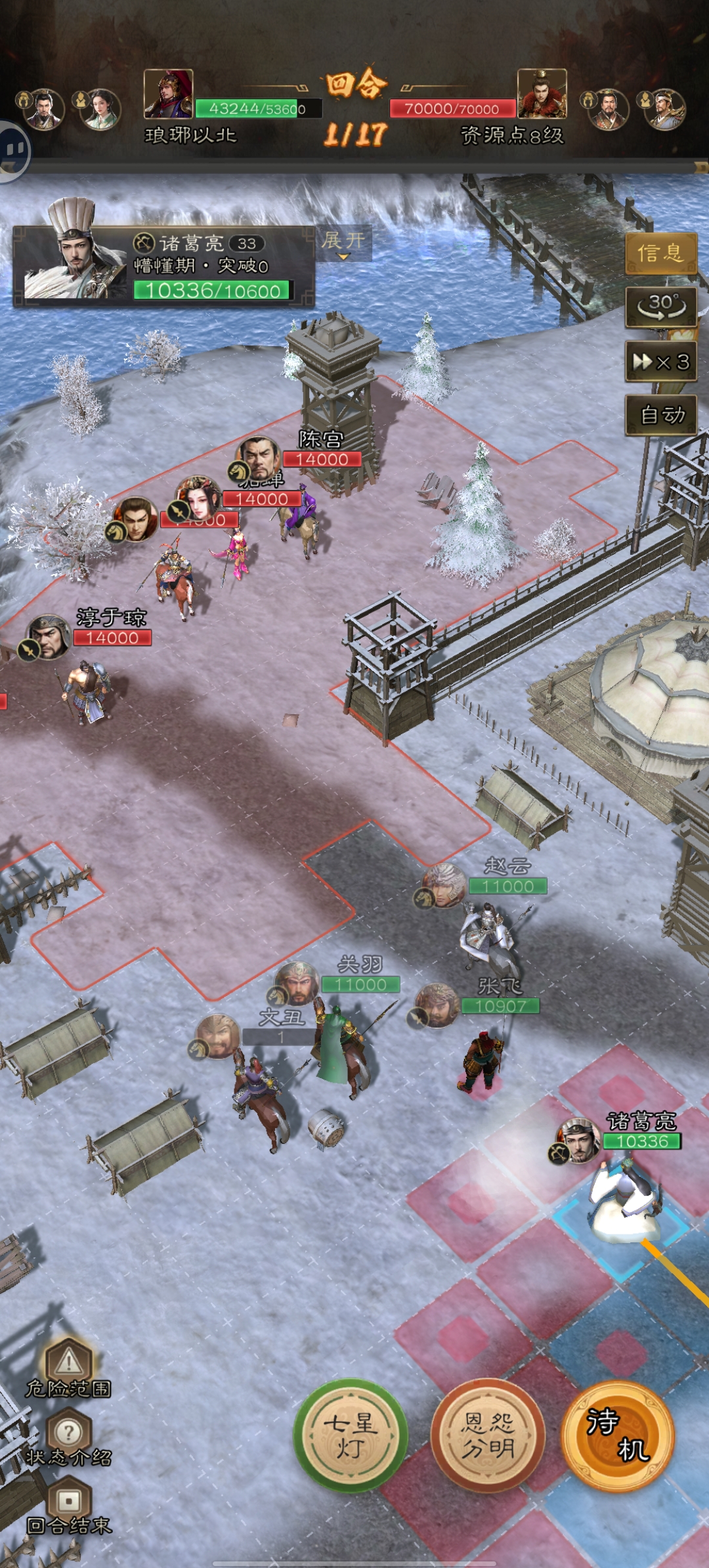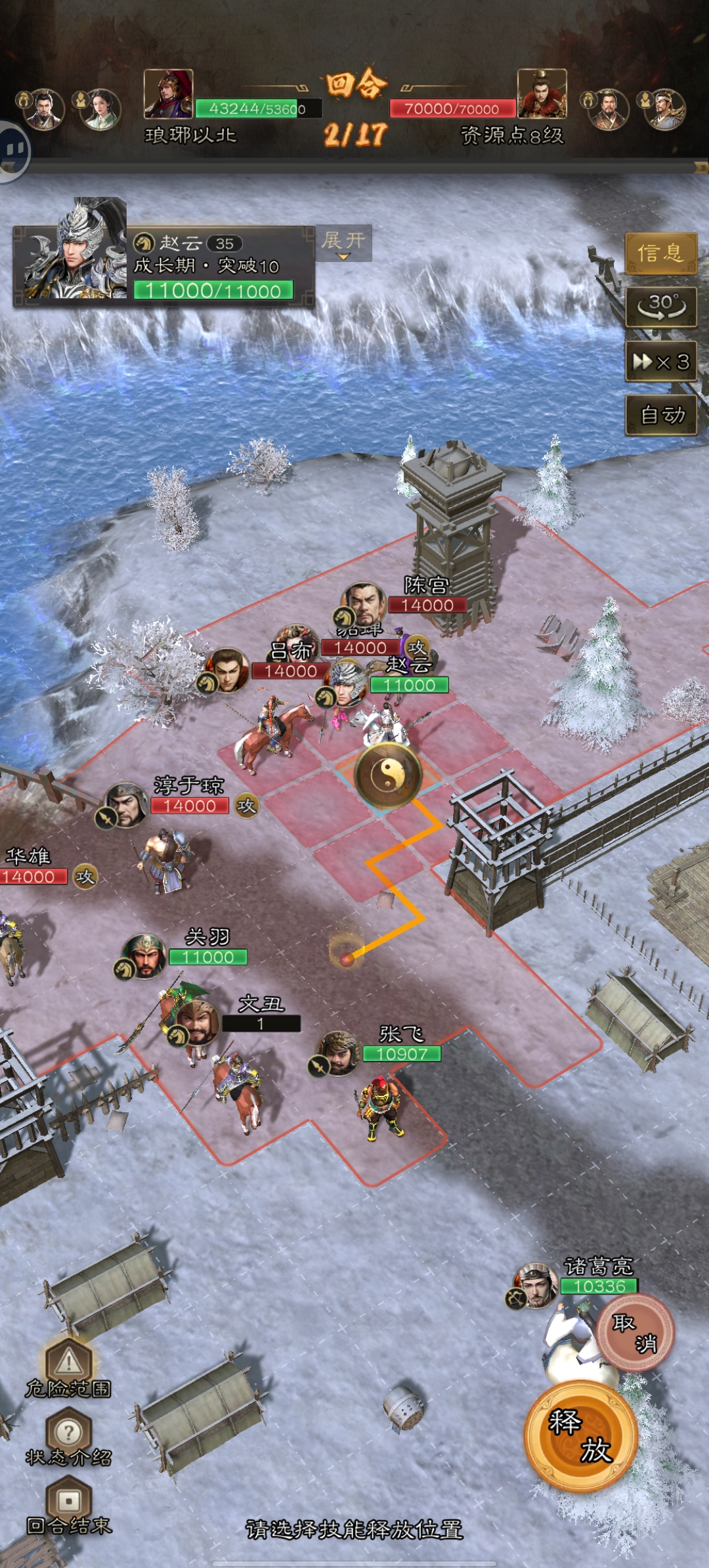 3.第二回合:第一次行动至上述位置,赵云“云大怒”;诸葛亮全队二动;