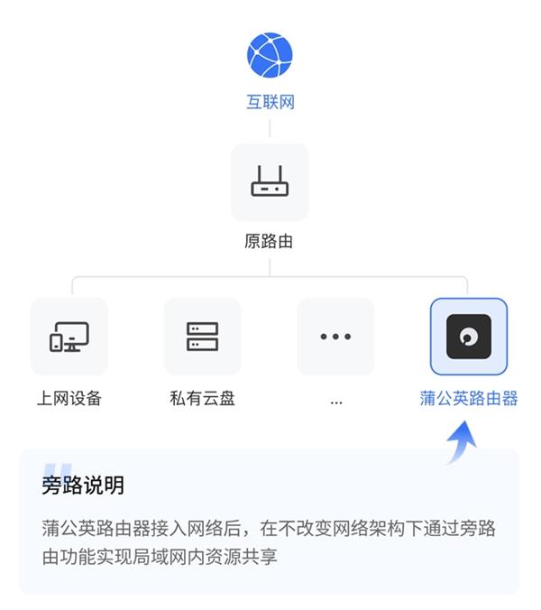 旁路设置的优势在于只需将X1 Pro和普通电脑一样接入家中网络,不必改动原有网络结构或是已有路由器配置,也不会影响其他设备上网,就能实现家中已有网络设备和远程设备之间的异地组网。