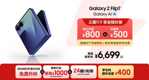 依托精巧的设计和出色的功能,三星Galaxy Z Flip7能够融入众多校园场景,满足同学们的多元需求。目前,在三星商城参与双十一促销活动并购买Galaxy Z Flip7的消费者可享受券后1300元的优惠以及其他一系列福利。更重要的是,如果你是通过教育认证的学生,还可叠加额外400元的优惠,享受更低的价格。不仅如此,2025年10月1日 00:00-2025年11月30日 23:59期间在三星学生购商城购买的产品均可享保价服务,大家也完全不用担心因价格浮动而损失利益。同学们快行动起来,趁着优惠将这款科技潮品收入囊中。
