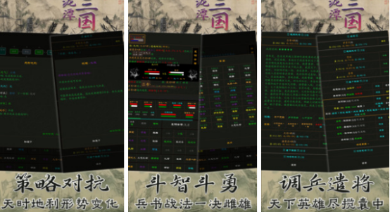 以三国演义为基础,通过文字的方式,将三国经典的历史事件和人物都完美展现,自由选择不同的势力、建设基地,最终制定个性化战略。具有多维度策略模式,比如政治外交等,利用联盟外交来实现统一目标。游戏战术足够灵活,根据地形兵种等不同的特点来自由调整。