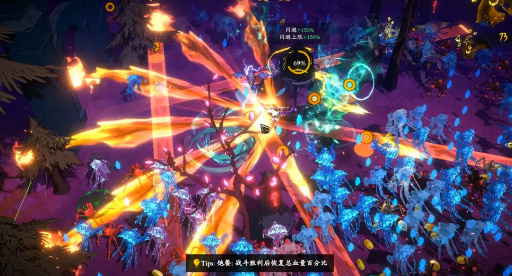 游戏内还内置了商店、营地,以及各类探索事件的触发,玩家可以在这些事件当中,取得游戏资源,也有一定概率可以获得神器,游戏的经验体系有多个流派的选择,技能系统庞大,玩家在战斗的期间只能选择一种技能效果。